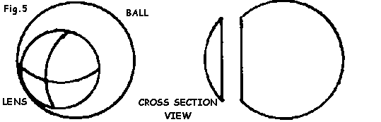 ASTIGAMATISM Astigmatism can be found in short-sighted and long-sighted people alike, and is quite a common condition, but is not usually understood by the average person. Basically it means that the eye has difficulty in focussing on objects at certain angles i.e. some of the spokes on a cycle wheel. In some cases vertical lines i.e. walls, may appear to the patient to be leaning over like the tower of Pisa. The explanation for this is that the eye, instead of being shaped like a golf ball in the normal eye, is shaped more like a rugby ball. This consequently some of the rays of light passing through the lenses of the eye miss falling onto the focal point of the retina, and as a result cannot be seen so clearly as other rays of light which are still able to fall on the focal point in the normal manner. Astigmatism can be corrected by including another power curve onto an existing lens. To explain this in simple terms we must consider the following examples and diagrams. A normal plus lens could be explained an being a section out off from a s shown in FIG.5