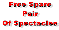 we are offering you the opportunity to obtain a FREE SPARE PAIR of single vision spectacles when you purchase any frame from EYE 2 EYE at £59.95 or more. You can select your spair pair frame from our special FREESTYLE range, which we will then make up to the same single vision presription as your new first pair - Two for the price of one. Price: FREE SPARE PAIR # 0001 |