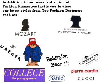 We Have a selection of top name Fashion Frames, at very attractive prices. In our designer section you will find such famous names as GEORGIO ARMANI, GUESS, POLO RALPH LAUREN, KALVIN CLYNE, MORGAN, PEIRRE CARDIN, MOZART, CACHAREL, OLIVER GOLDSMITH, JEAGER and other top quality frames. Price: £ competative frame only # 0006 |